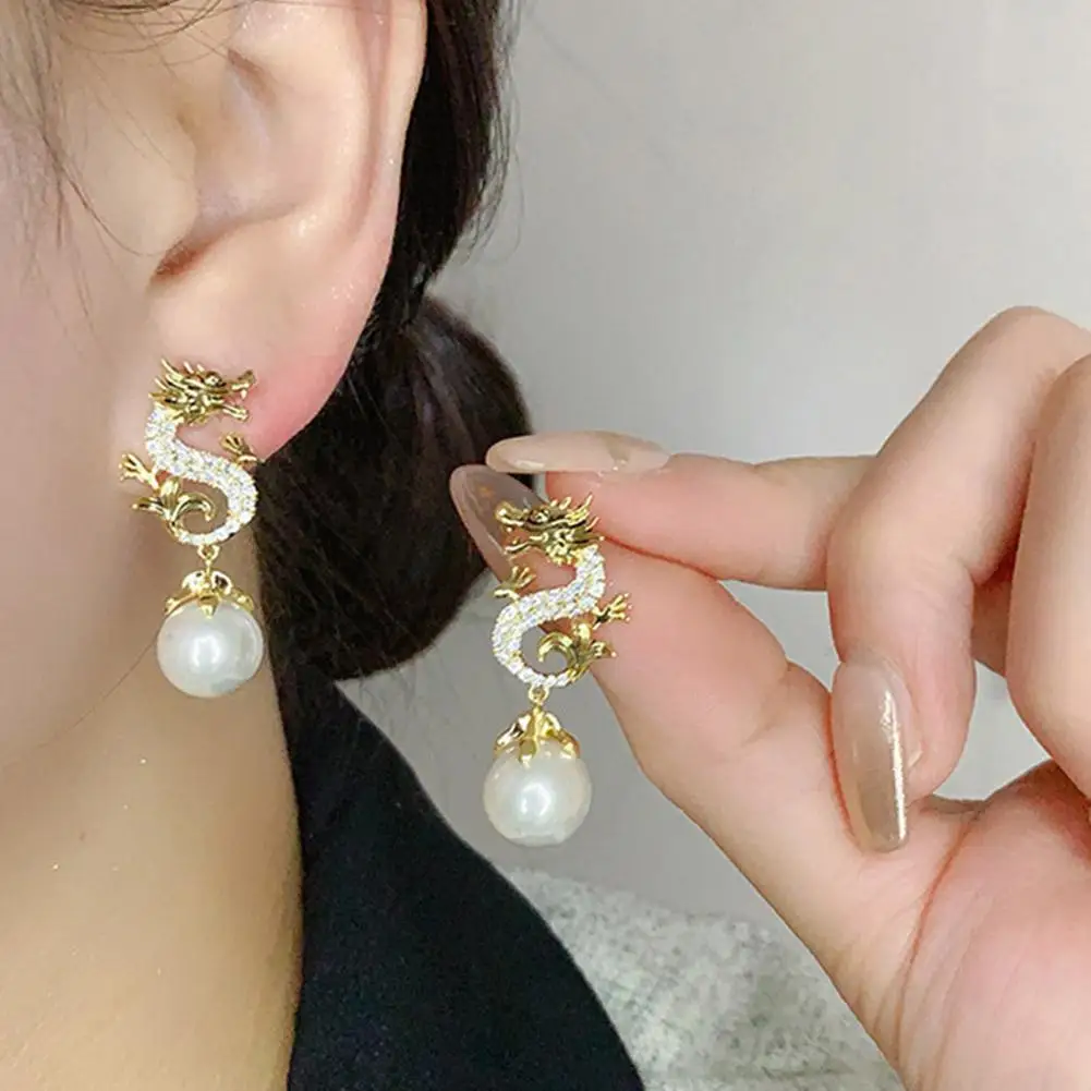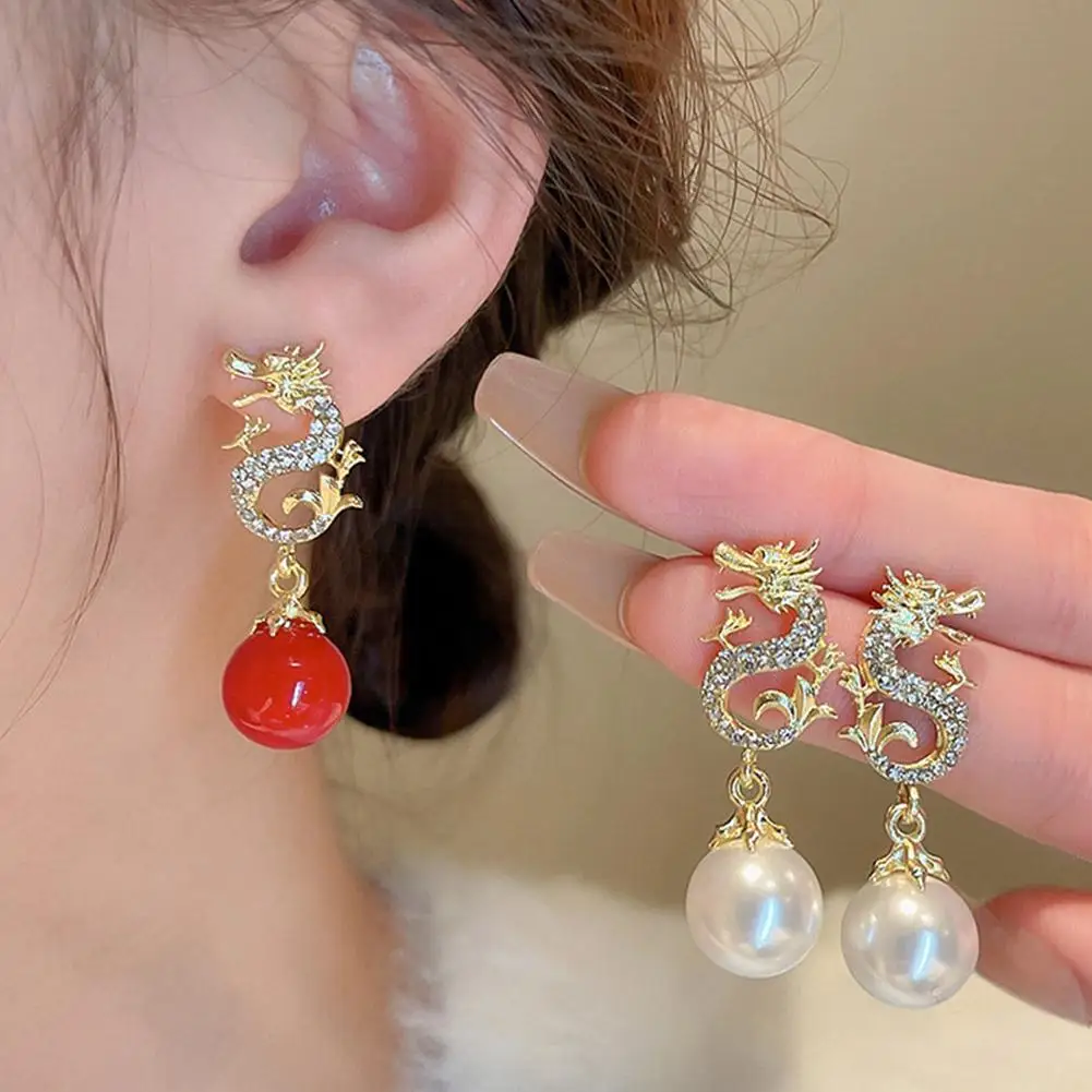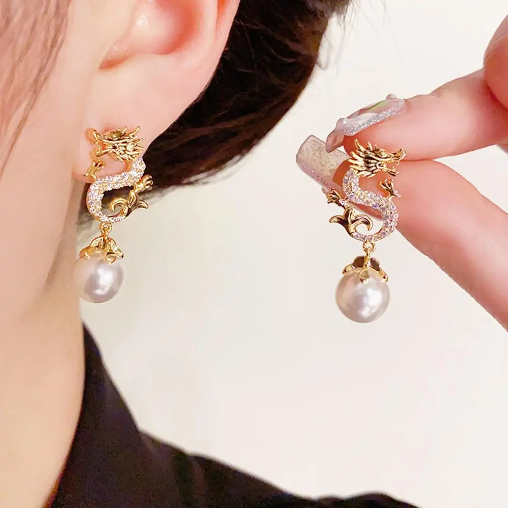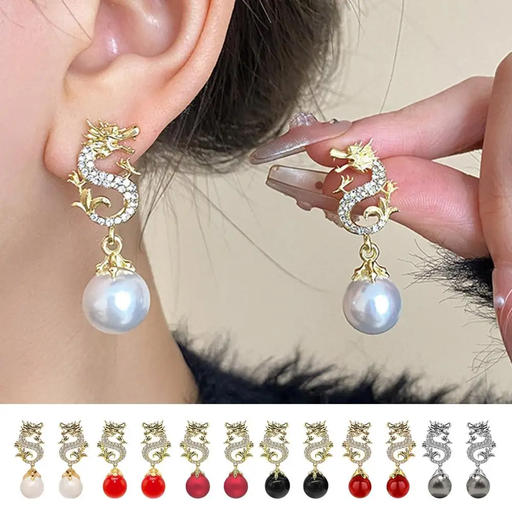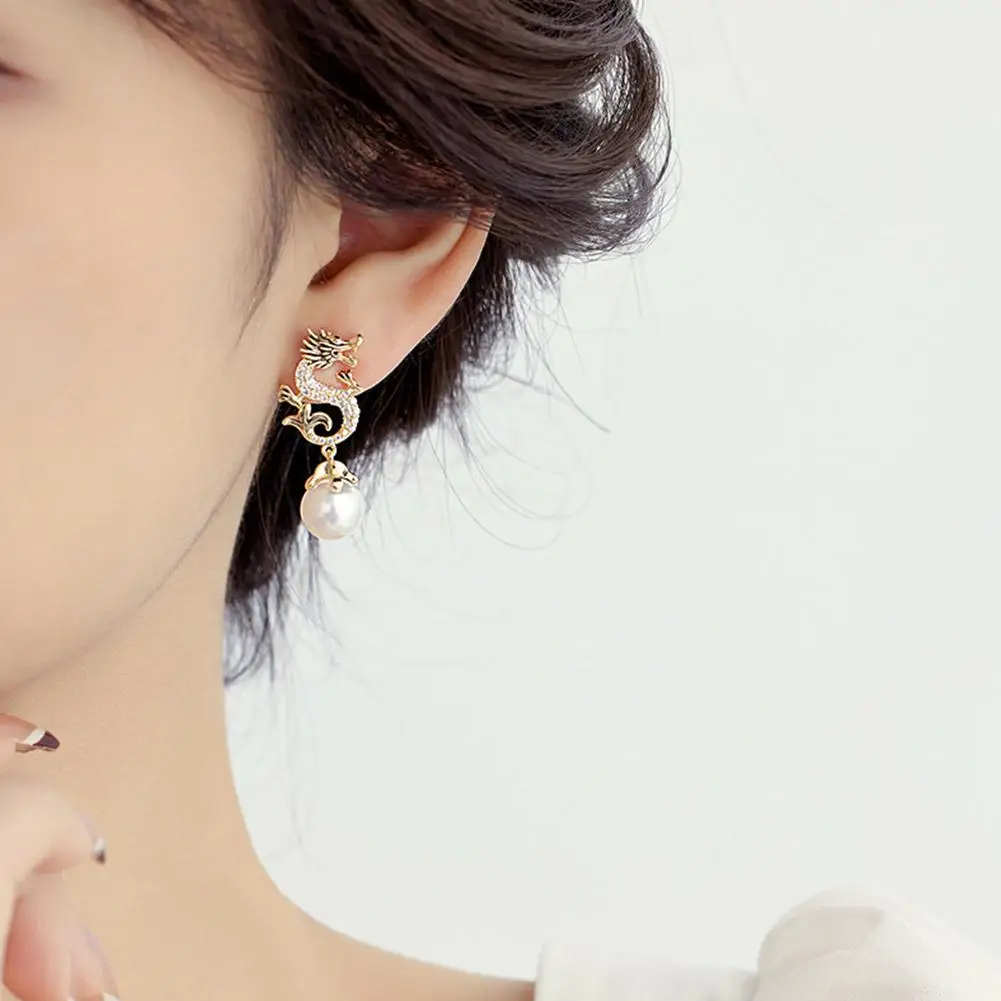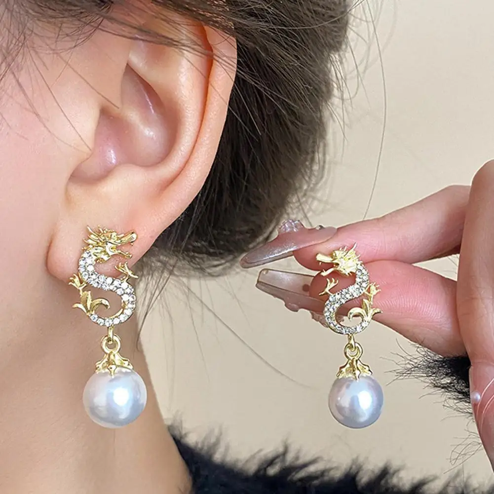 Dragon Earrings for Women Temperament Pearl Drop Earring 2025 New Year Festive New Year Dragon Jewelry
