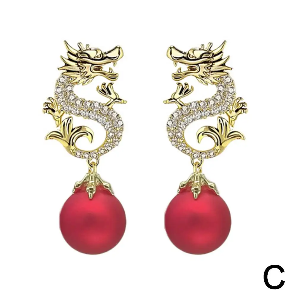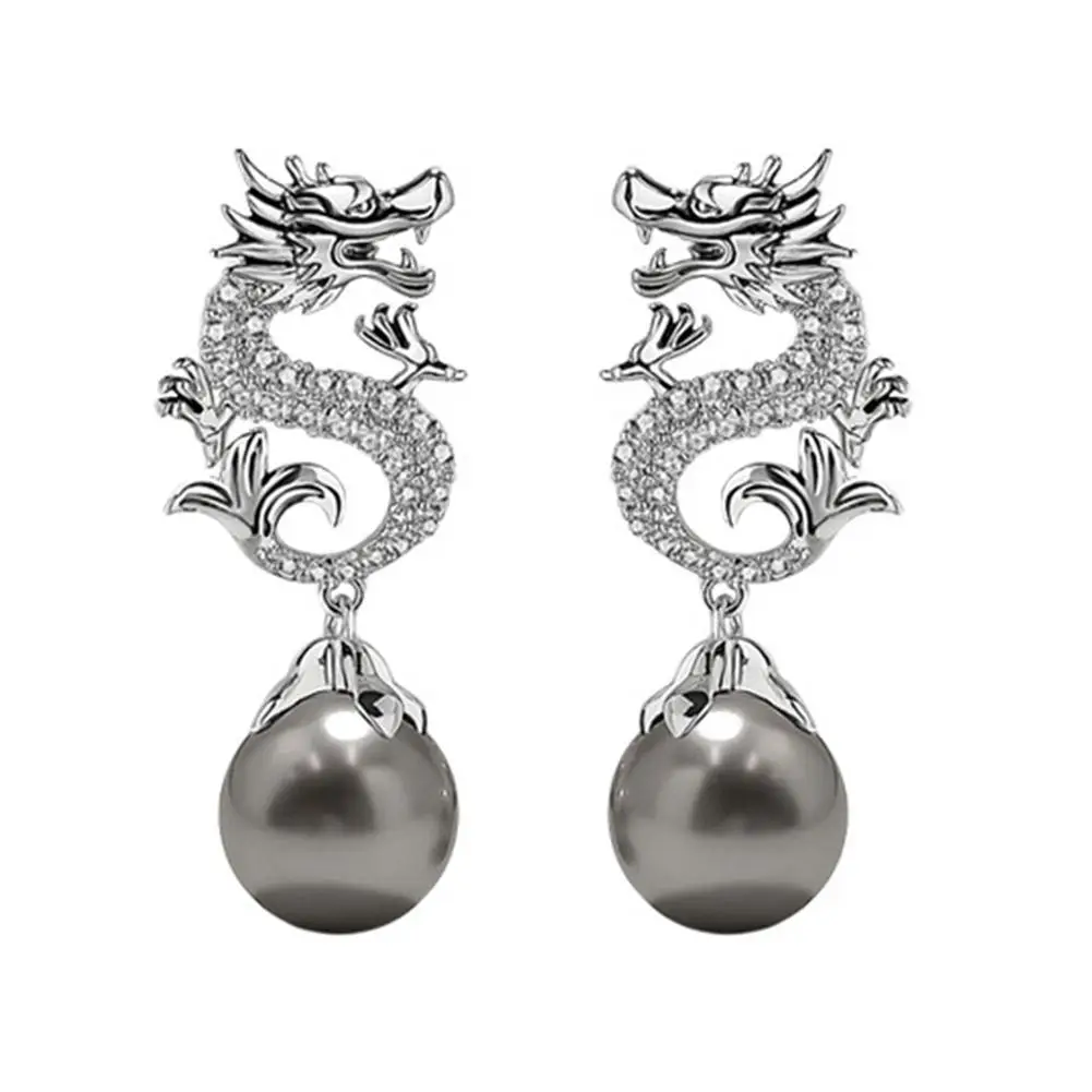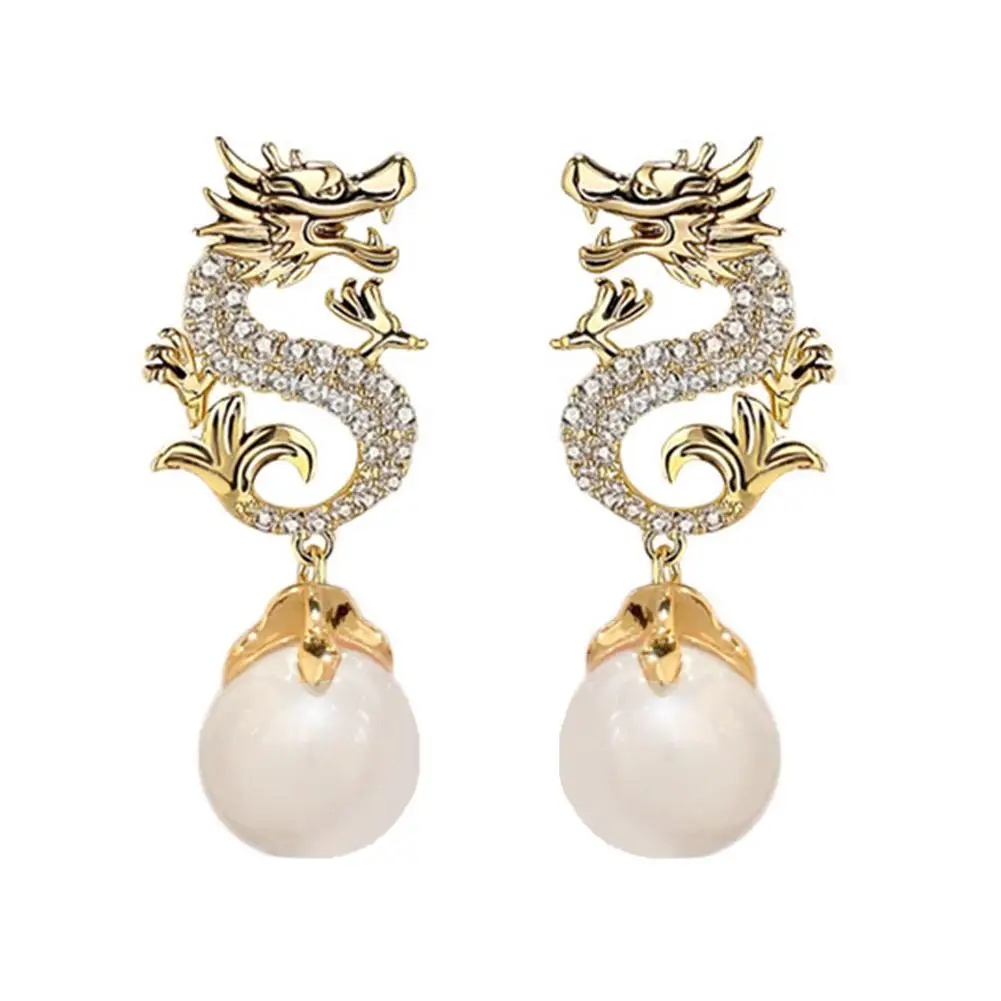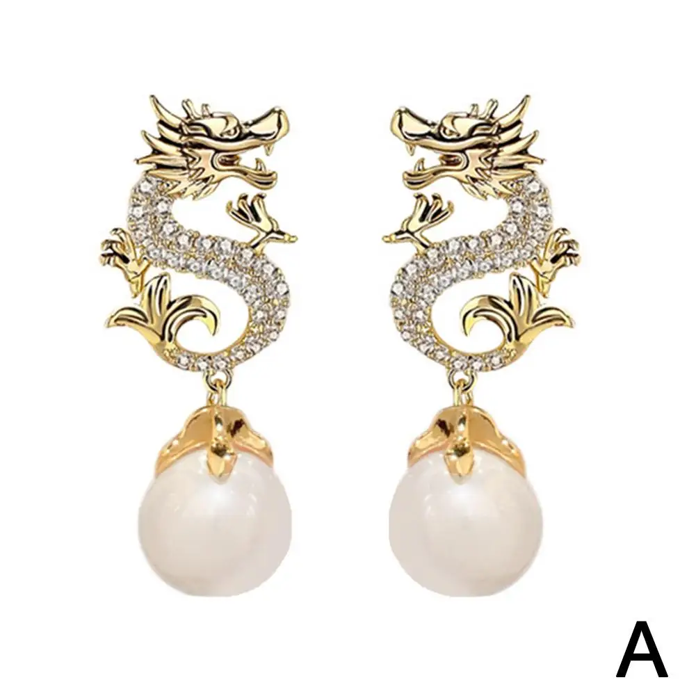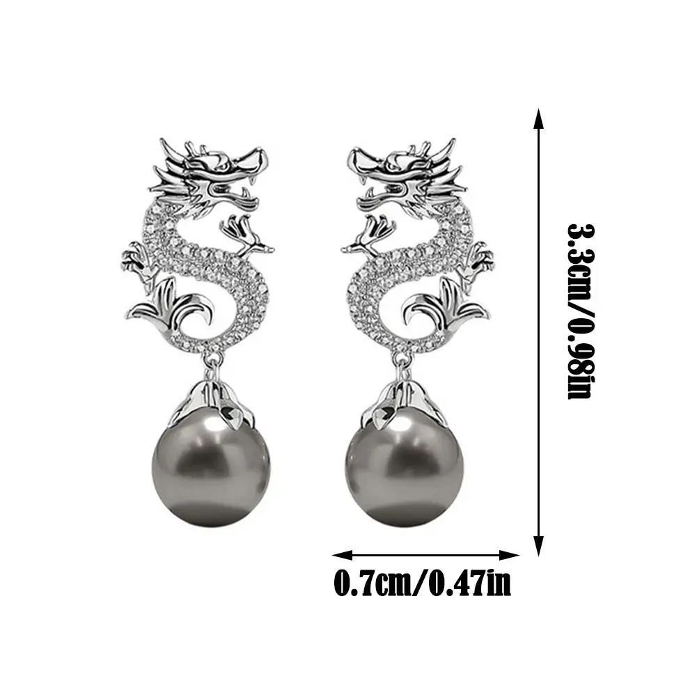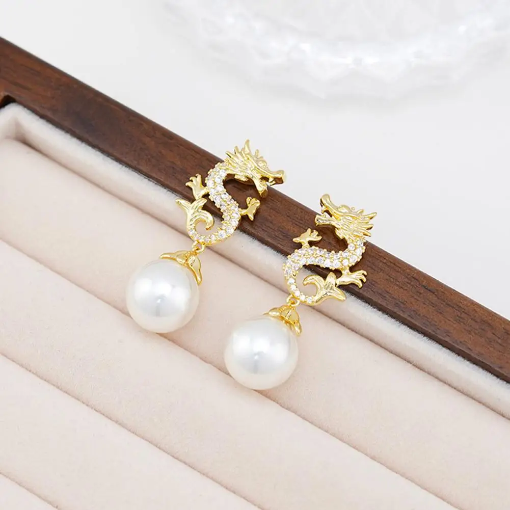Dragon Earrings for Women Temperament Pearl Drop Earring 2025 New Year Festive New Year Dragon Jewelry