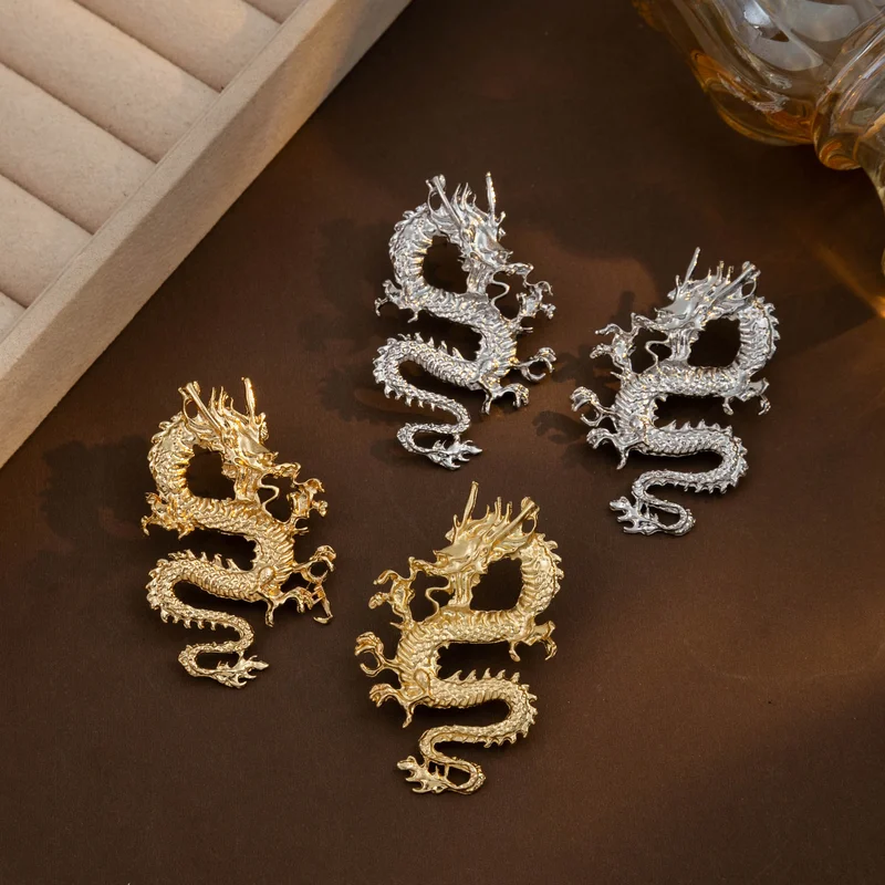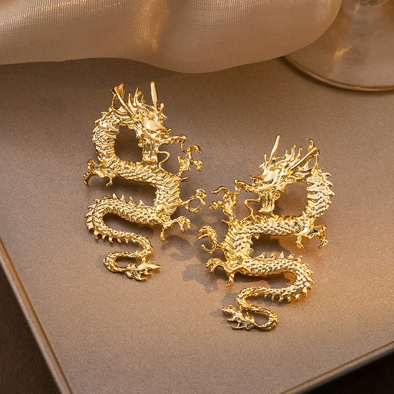 Dragon Stud Earrings Personality Pendant Earring Jewelry Unique Design Geometric Female Exaggerated Earring Gift