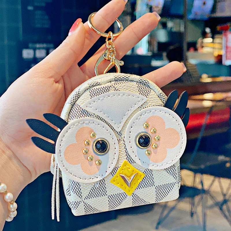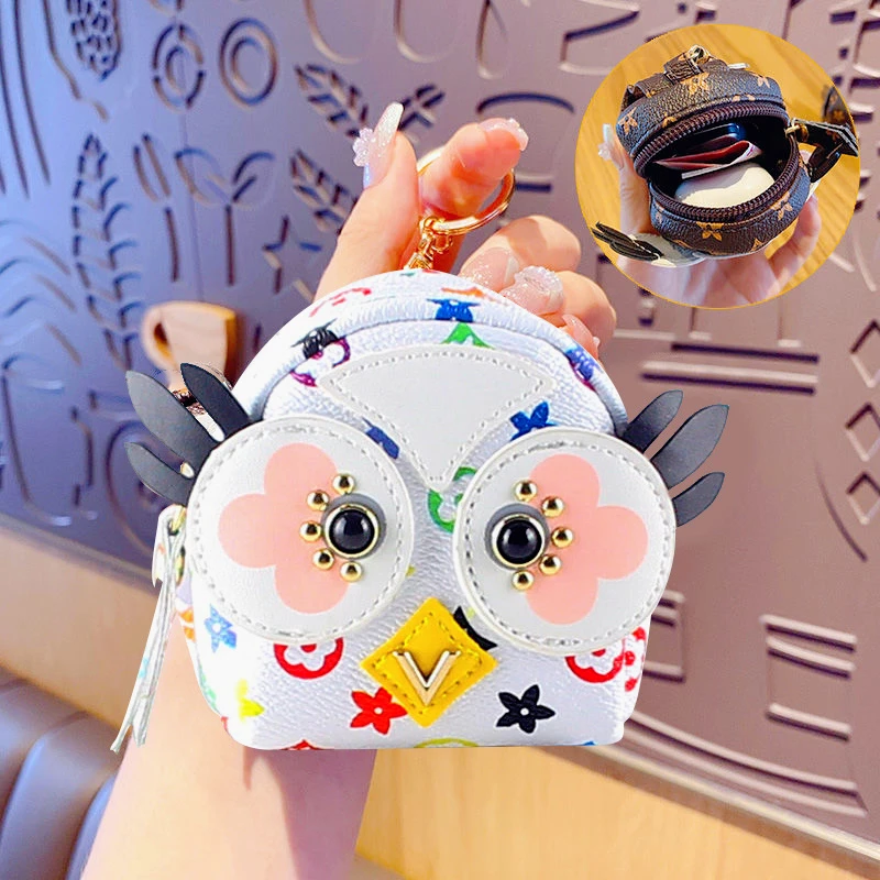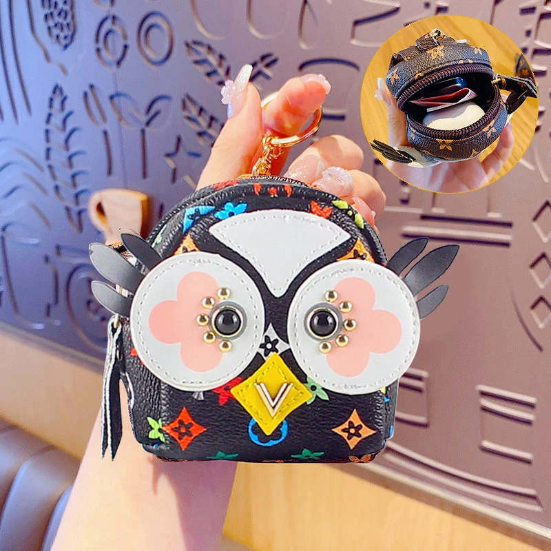New Cute Leather Owl Wallet for Anniversary Celebration Mini Decorative Hanging Bag Earphone Storage Bag Mini Cute