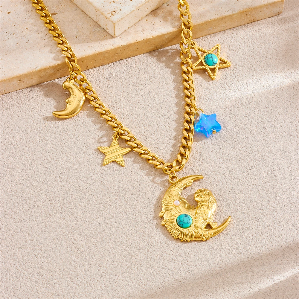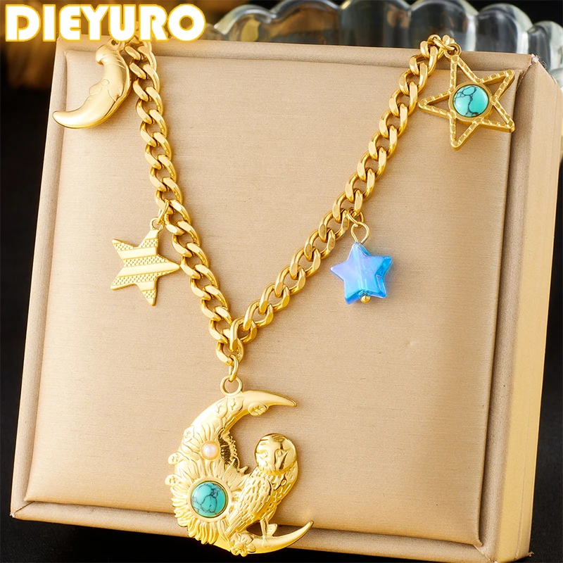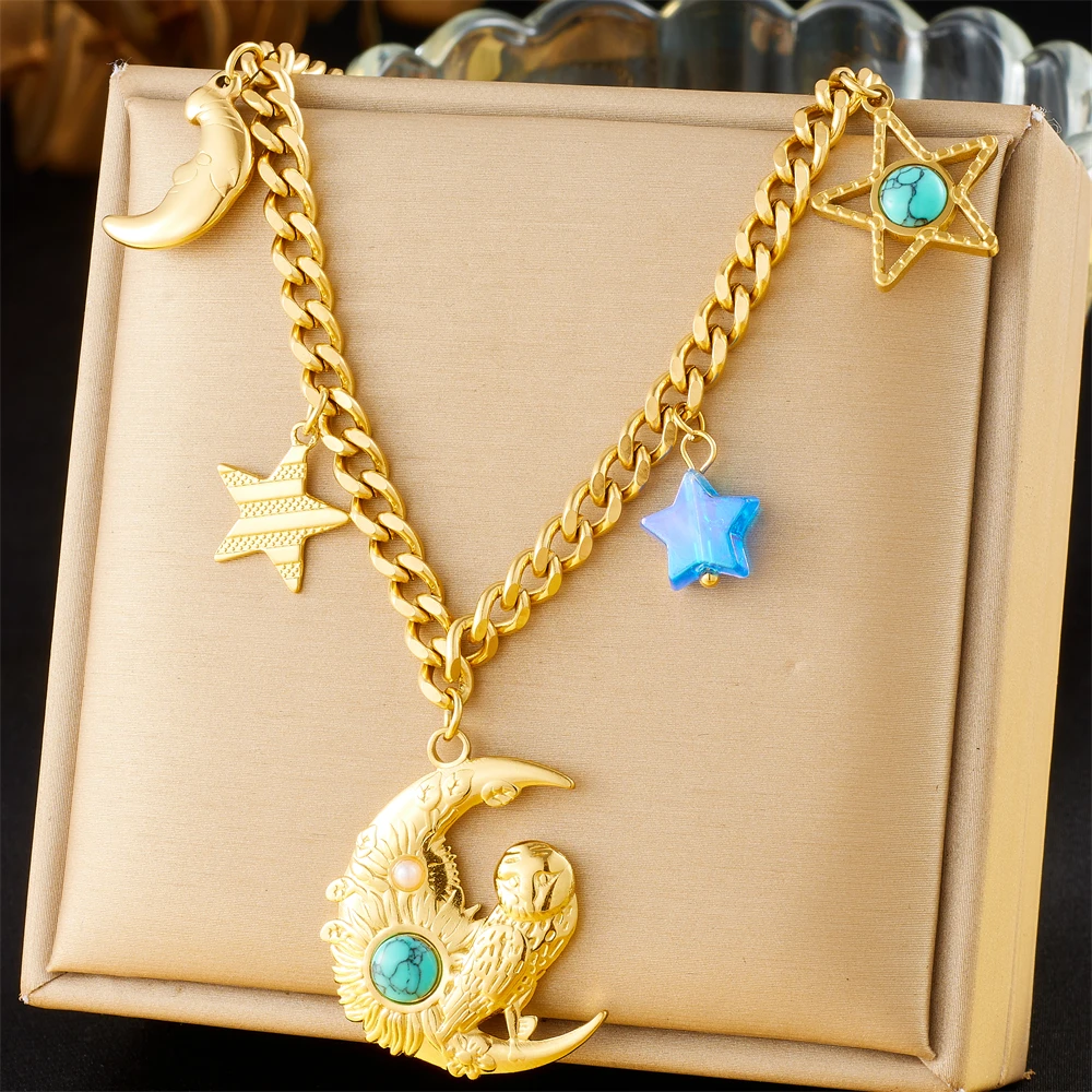 Owl Multi Pendant Necklace For Women Trend Neck Chain Waterproof Jewelry Gift